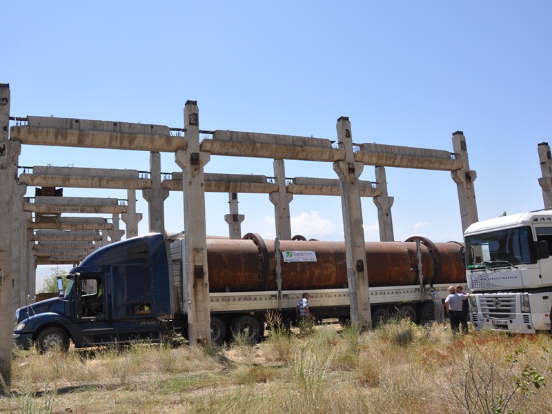 Dismantling and loading the dryer drum for processing fodder for further transportation to Almaty, Kazakhstan.